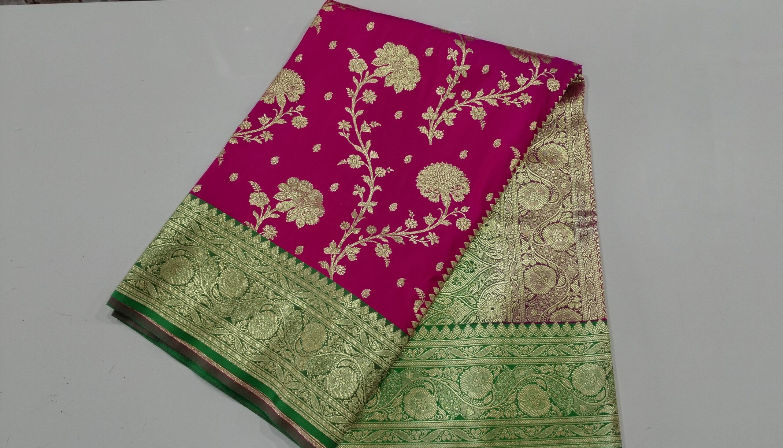 Every motif and border is carefully handwoven, showcasing floral and paisley designs that add an aura of sophistication. The vibrant color palette ensures that this saree stands out, making it ideal for weddings, receptions, and festive occasions. Lightweight yet grand, it offers comfort without compromising on style, ensuring the bride feels confident and radiant throughout her special day.