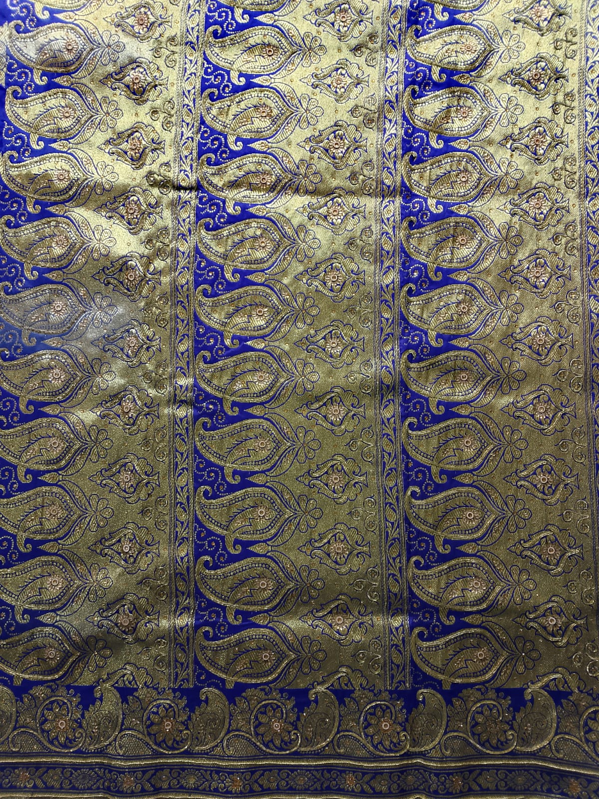 Every inch of the JBBS57 exudes sophistication. The saree is adorned with exquisite zari work, reflecting traditional Mughal-inspired motifs such as floral butis, paisleys, and royal borders. The patterns are delicately interlaced using age-old kadwa weaving techniques, giving it a rich, embossed feel that you can see and touch.