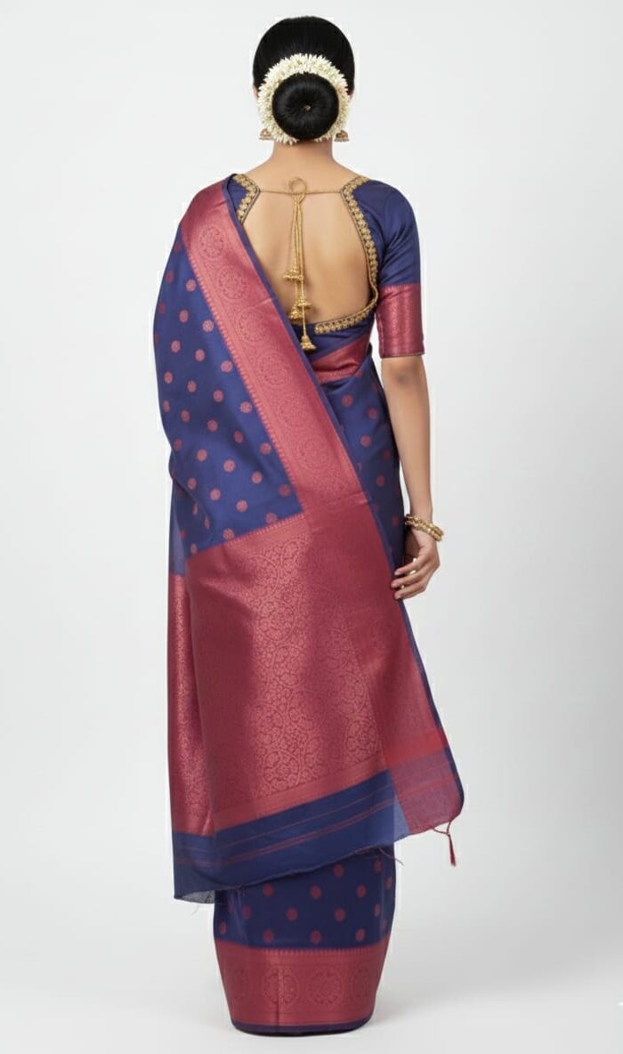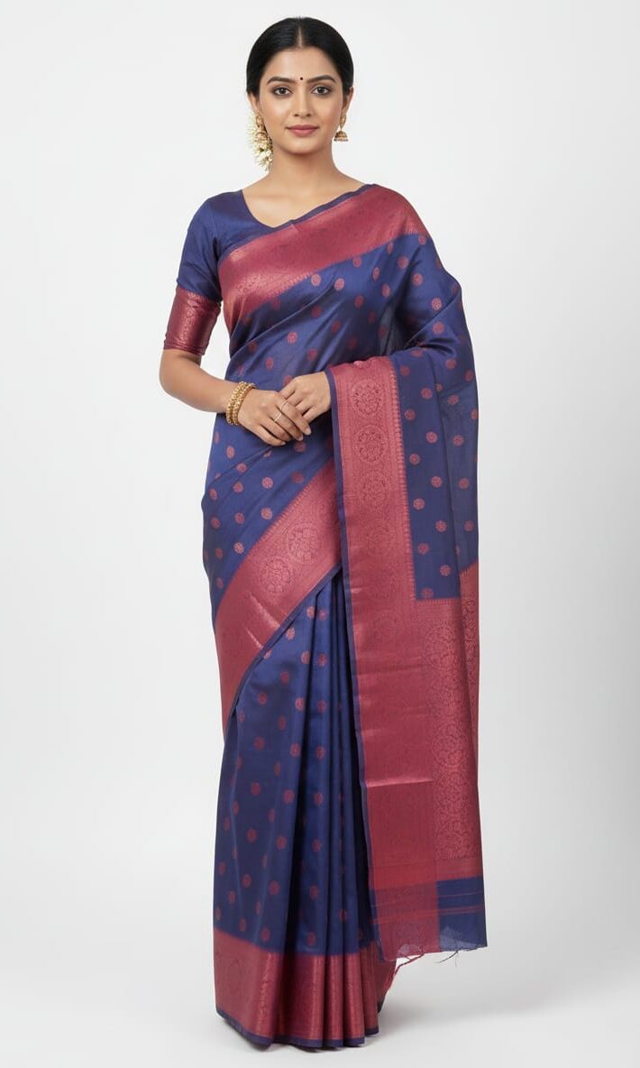 Banglore silk is prized for its lightweight nature and durability, making it ideal for long celebrations and festive occasions. The JBS27 features sophisticated weaving patterns that add depth and richness to the saree while maintaining a refined, classy look.