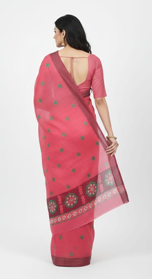 Maintenance is simple and hassle-free. The saree can be hand washed or machine washed with mild detergent, retaining its softness and color quality even after multiple washes. Over time, the cotton fabric becomes even softer, enhancing your comfort further.