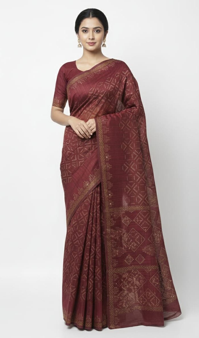 Durability is another strong advantage of this saree. The tightly woven cotton fibers help retain the fabric’s shape and texture even after repeated washing and regular use. This ensures that your saree continues to look elegant and fresh for years.