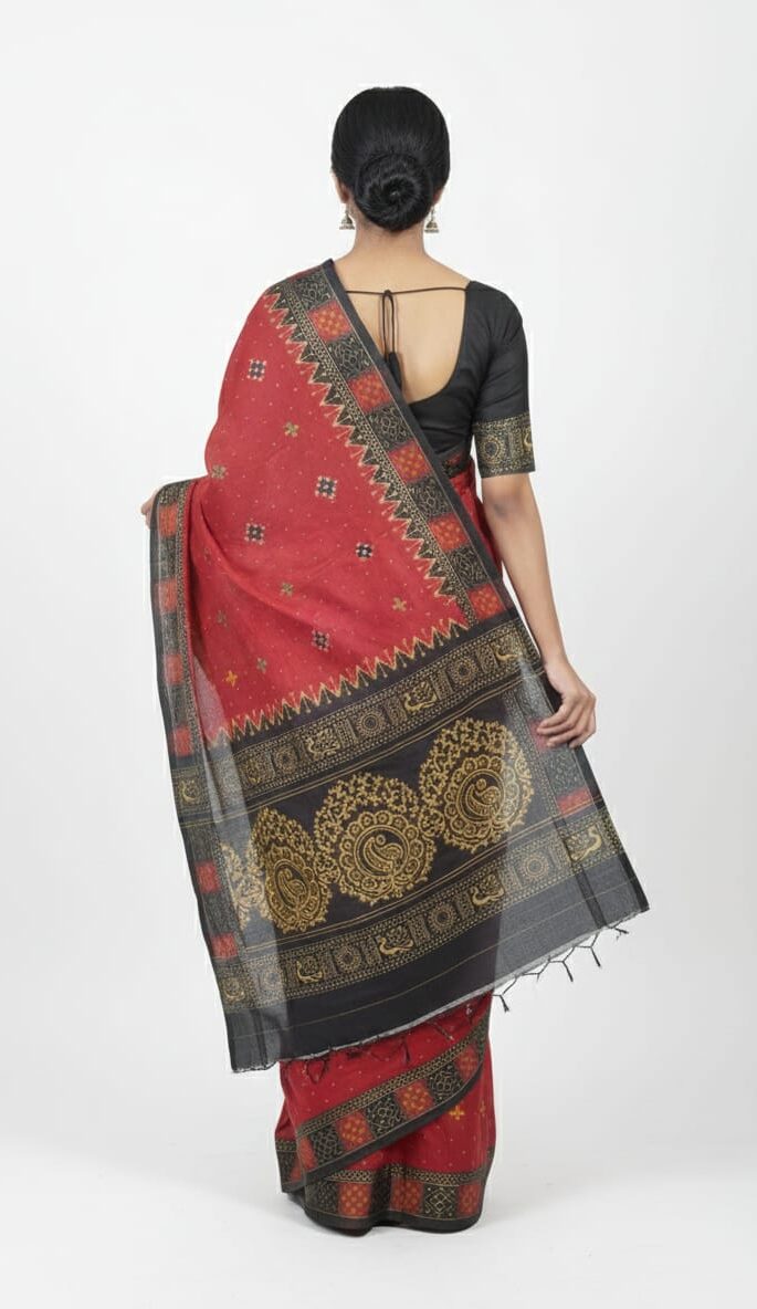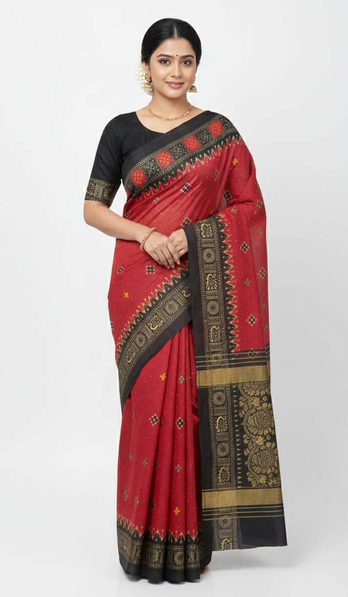 This saree is highly versatile when it comes to styling. Pair it with a matching cotton blouse for a coordinated formal look or experiment with contrast colors to create a bold fashion statement. Minimal jewelry enhances its graceful appearance for daily wear, while traditional accessories can transform it into an outfit fit for festive occasions.