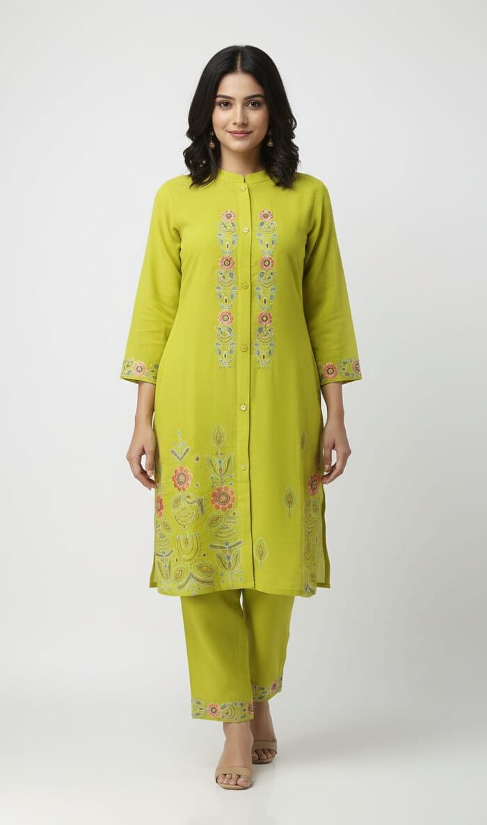 In addition to its aesthetic appeal, this kurti set is also easy to maintain. The fabric is designed to be low-maintenance, allowing you to enjoy its beauty without the stress of complicated care instructions. This makes it a practical choice for busy lifestyles.
