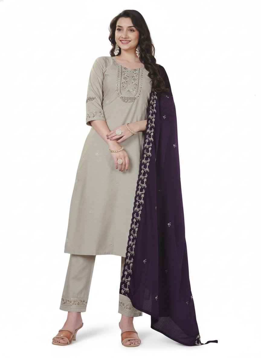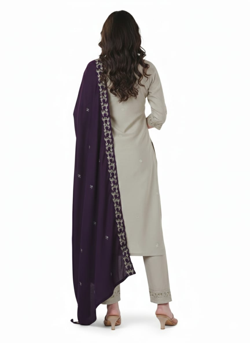 This kurti set features a finely tailored kurti paired with coordinated bottoms, creating a harmonious and stylish look. Whether you are heading to work, attending a casual outing, or celebrating a special occasion, this outfit adapts perfectly to every setting. Kurti sets are widely loved for their convenience and versatility, as they provide a ready-to-wear coordinated outfit without the need for additional styling effort .