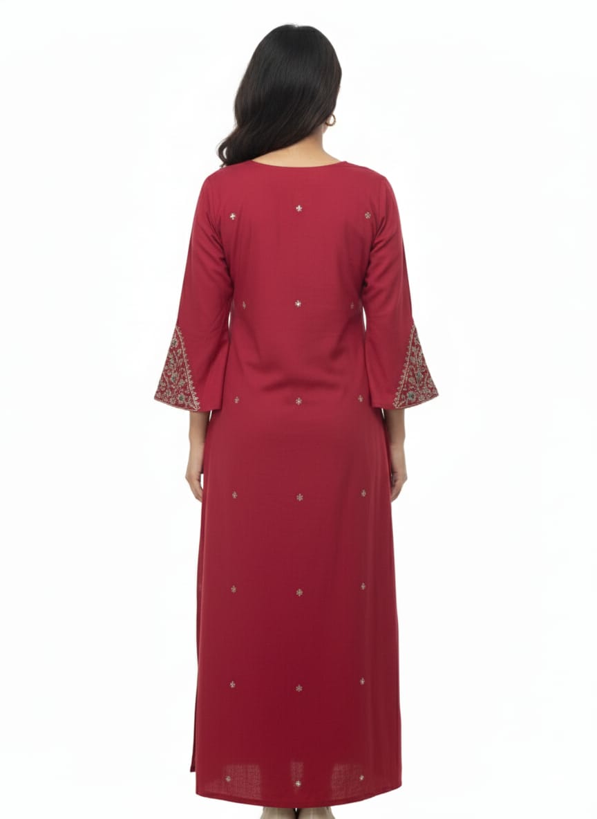 The thoughtfully tailored silhouette flatters all body types, offering a graceful drape that enhances your natural look. Its versatile design allows effortless pairing with leggings, palazzos, straight pants, or even jeans for a chic fusion outfit. Whether you are heading to the office, attending family gatherings, or stepping out for casual outings, this kurti fits every moment seamlessly.