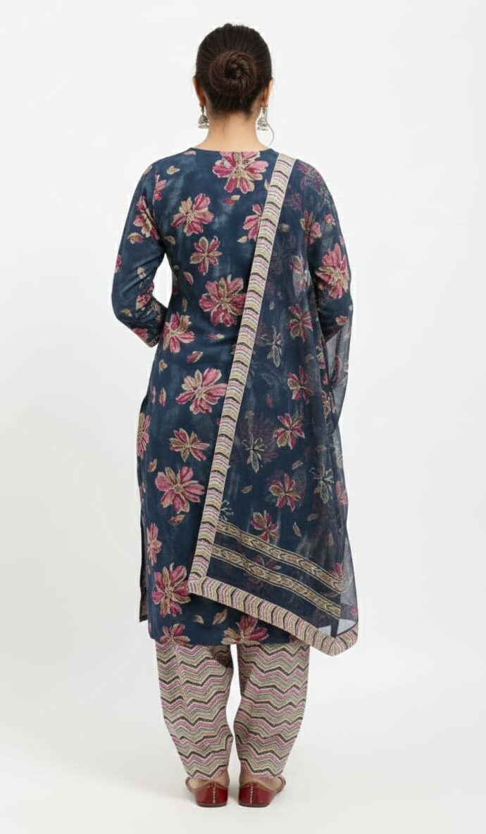 This beautiful patiyala set includes a stylish kurti and a comfortable patiyala salwar, creating a complete Punjabi ethnic outfit. The design is made for women who want to look graceful and traditional while still enjoying a relaxed fit. The patiyala salwar adds the signature Punjabi charm with its pleats and flowy structure, making the overall look rich and eye-catching.