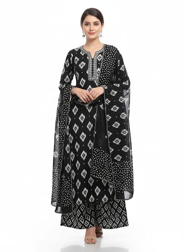 The JPLS30 Plazo Set offers multiple styling options. For a professional office look, pair it with minimal jewelry and classic flats. For festive or evening occasions, enhance your appearance with statement earrings, heels, and a stylish dupatta. Add a chic clutch or structured handbag to complete your elegant ensemble.
