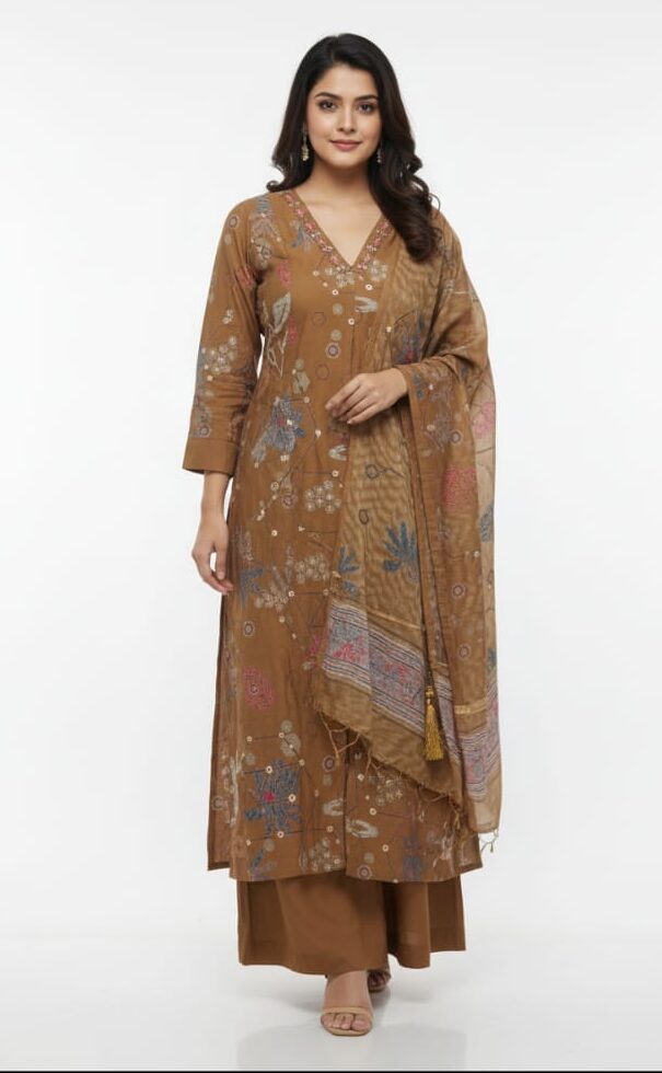The JPLS22 Plazo Set is highly versatile and easy to style. For a refined office look, pair it with minimal jewelry and comfortable flats. To elevate the outfit for festive or evening events, add statement earrings, heels, and a stylish dupatta. A chic handbag or clutch can further enhance your overall appearance.