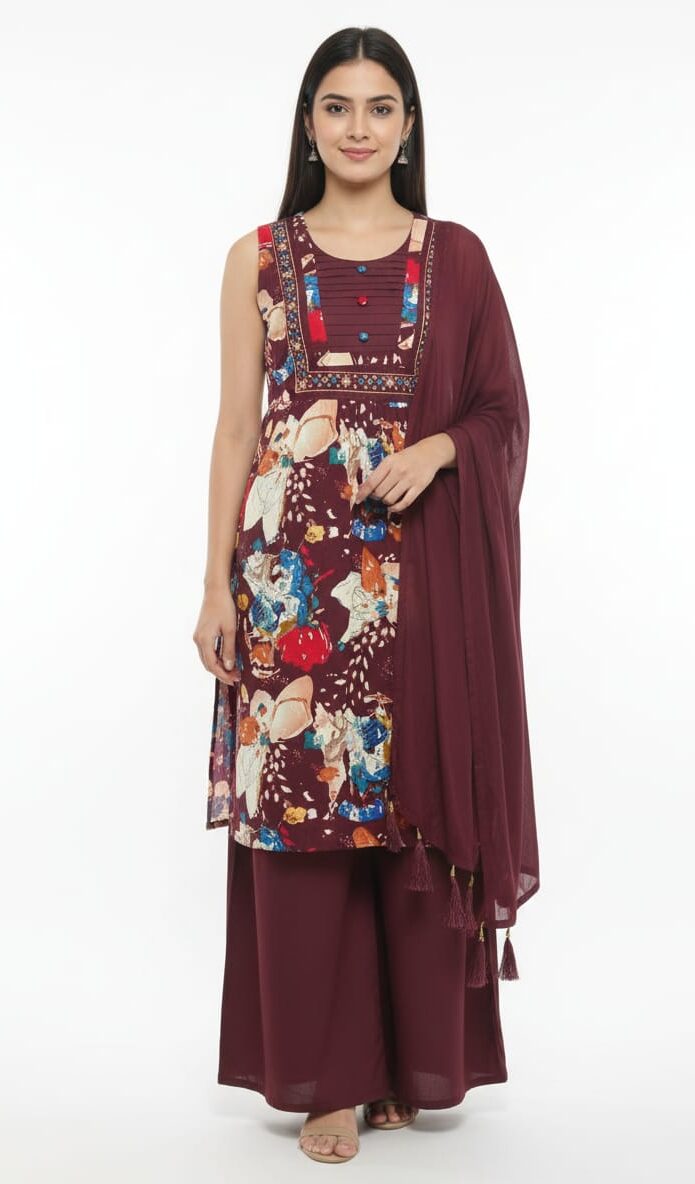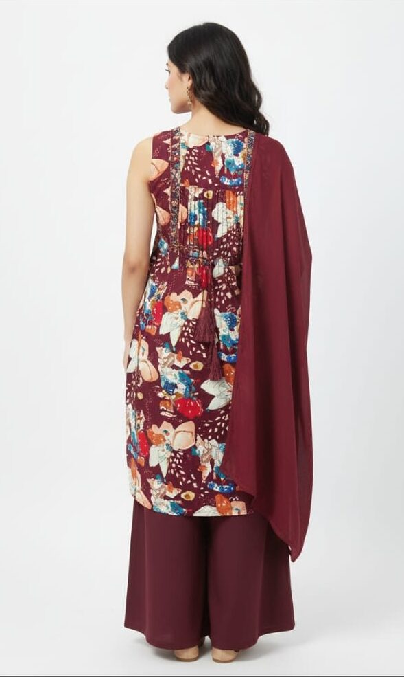 Another advantage of this outfit is its mix-and-match flexibility. The kurta can be paired with leggings, palazzo pants, or even denim for a fusion look, while the plazo pants can be worn with other kurtis or fashionable tops to create multiple outfit combinations.