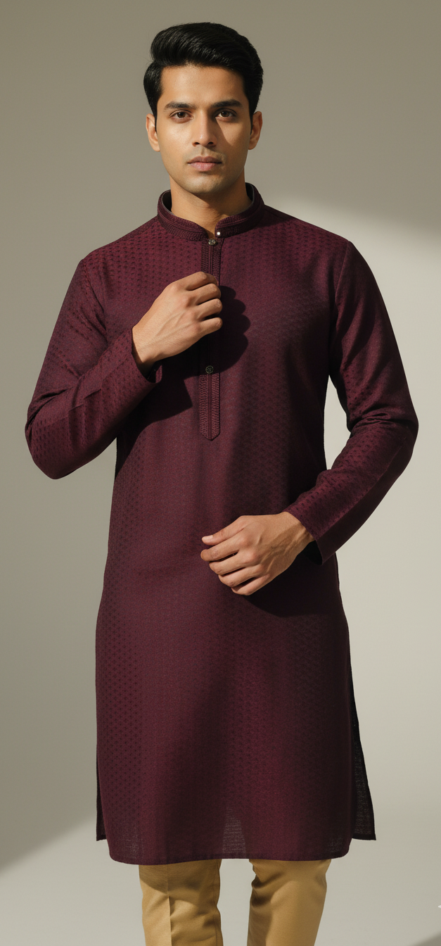Made from premium-grade cotton fabric, the KURTA JKT403 ensures superior breathability and all-day comfort. Its lightweight texture keeps you relaxed, while the rich, fine finish gives it a luxurious appeal. The kurta’s minimalist yet stylish design — featuring a straight hem, full sleeves, and a mandarin collar — adds an aura of timeless sophistication.