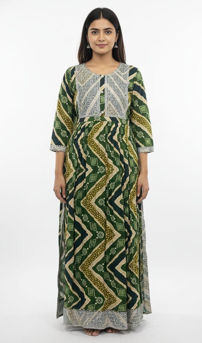 One of the biggest advantages of this kurti is its versatility. It pairs beautifully with leggings, palazzos, straight pants, churidars, or jeans, allowing you to style it in multiple ways. For a simple daytime look, pair it with minimal accessories and flats. For festive occasions or family functions, enhance your outfit with statement jewelry, heels, and a dupatta to create a more traditional appearance.