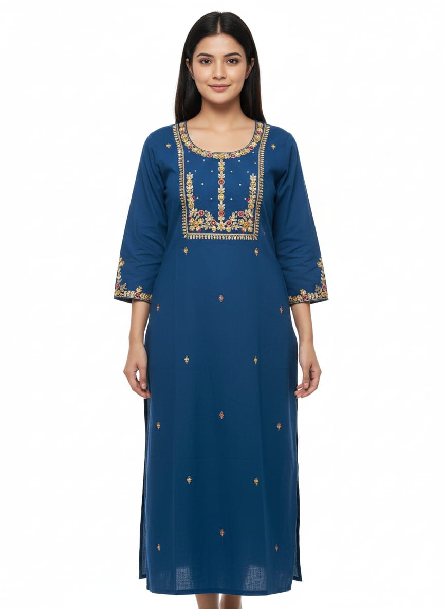The stitching and finishing are done with great attention to detail, ensuring durability and a premium feel. You can style JK271 easily with leggings, palazzos, straight pants, or jeans for a modern fusion look. Whether you want a comfortable daily kurti or a stylish outfit for special occasions, KURTI JK271 by Juss Apparels is a must-have addition to your wardrobe.