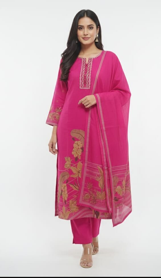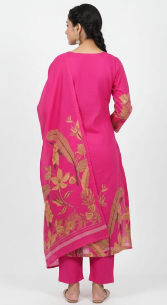 The design of Kurti Set JKS442 stands out with its refined patterns and graceful silhouette, giving you a polished and sophisticated look. Whether you are dressing up for a festive celebration, attending a family gathering, or heading to work, this outfit ensures you look effortlessly stylish on every occasion. Its flattering fit is designed to suit different body types, enhancing your natural elegance.