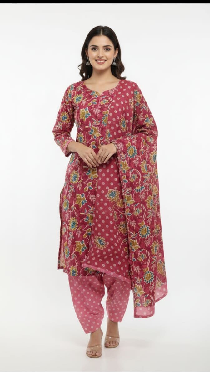 This set brings you the beauty of ethnic fashion with a stylish silhouette that never goes out of trend. The Patiala style is well-known for its graceful pleats, comfortable flow, and classic Punjabi vibe, making it one of the most loved outfits in Indian ethnic wear. Whether you’re dressing up for a special occasion or keeping it simple for everyday use, this Patiala set helps you look confident and stylish without any extra effort.