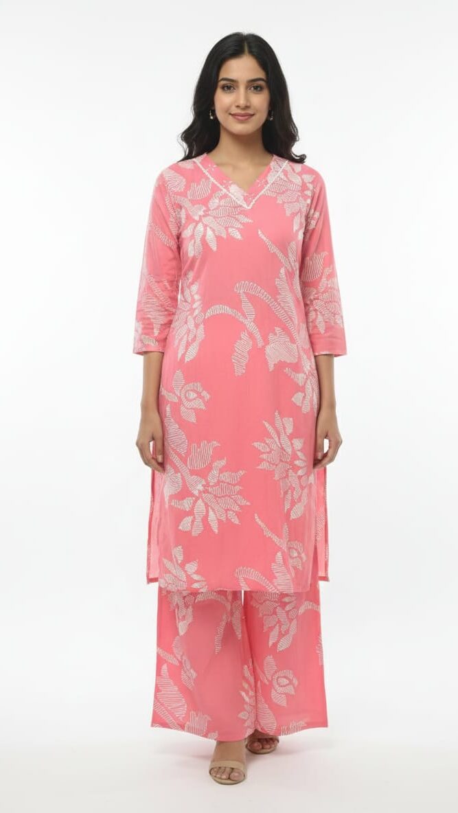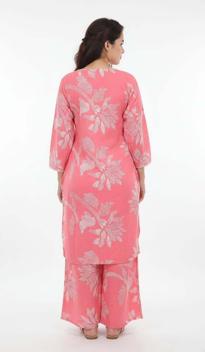 Made from premium-quality fabric, this plazo set feels soft and breathable, making it an ideal choice for Indian weather. The material is lightweight yet durable, allowing you to wear it comfortably for long hours. The fabric drapes naturally, giving the outfit a smooth and flattering fall that enhances your overall look. The kurti-style top is stitched with care to provide a comfortable fit, while the wide-leg plazo pants offer free movement and an effortless stylish feel. Together, the top and plazo create a coordinated ethnic look that is both trendy and timeless.
