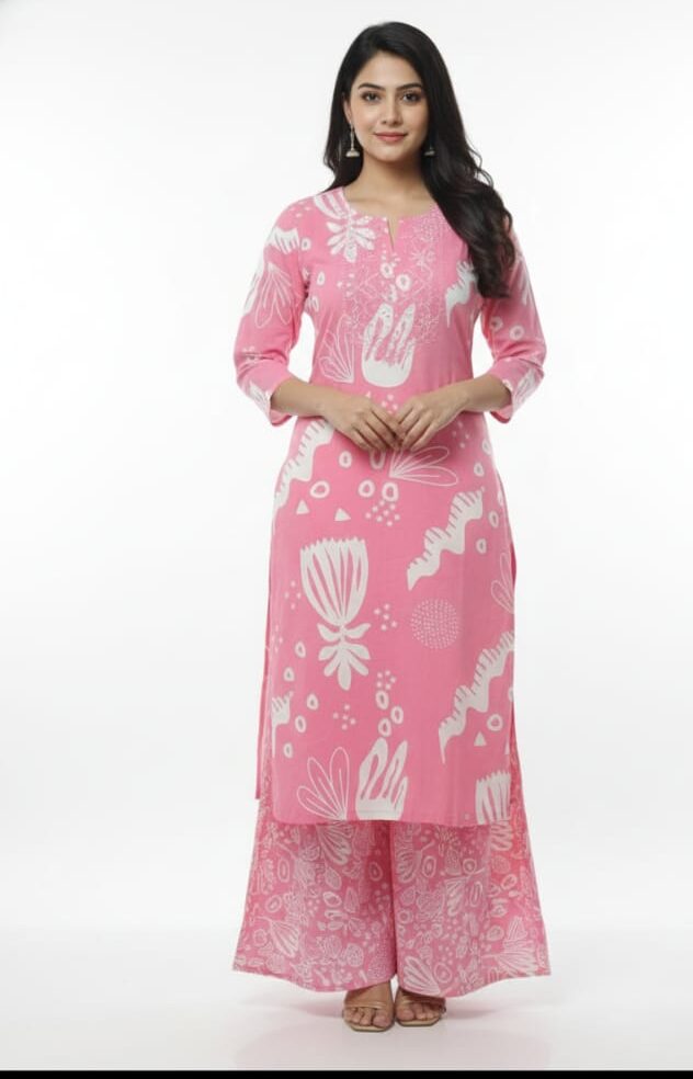Another big advantage of this set is that it can be worn as a complete matching outfit or styled separately. The kurti can be paired with jeans, leggings, or different palazzos for a fusion look. The plazo pants can be styled with a different kurti or a short top to create a modern Indo-western outfit. This gives you multiple outfit options from one set, making it more valuable and useful in your wardrobe.