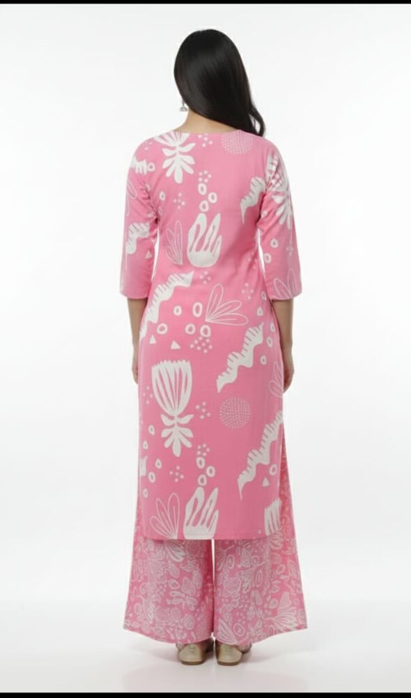 The kurti-style top in this set is tailored with attention to fit and comfort. It offers a neat shape that looks elegant and suits different body types. The stitching quality is strong and clean, ensuring durability and long-lasting use. The plazo pants are designed in a relaxed wide-leg style, giving you free movement and a trendy ethnic look. The combination of kurti and plazo creates a balanced outfit that looks fashionable, graceful, and modern at the same time.
