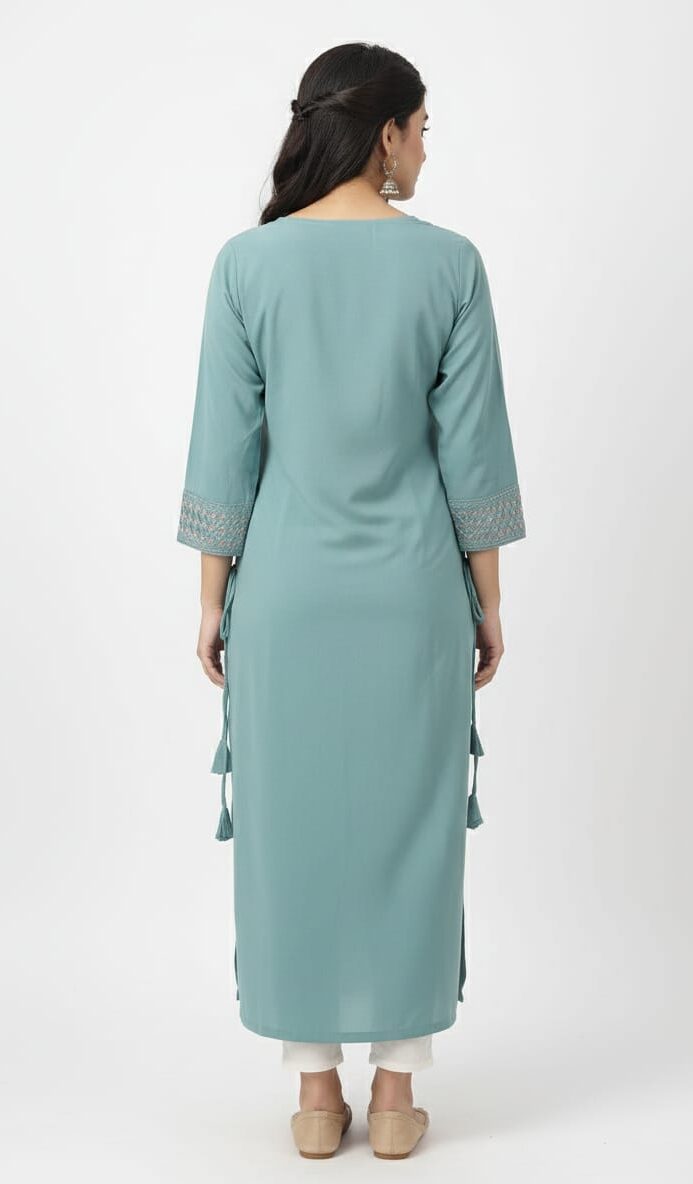 JK38 pairs beautifully with leggings, palazzos, or jeans, offering multiple styling options for different occasions. Whether you prefer a minimal professional look or a relaxed casual style, this kurti adapts effortlessly.