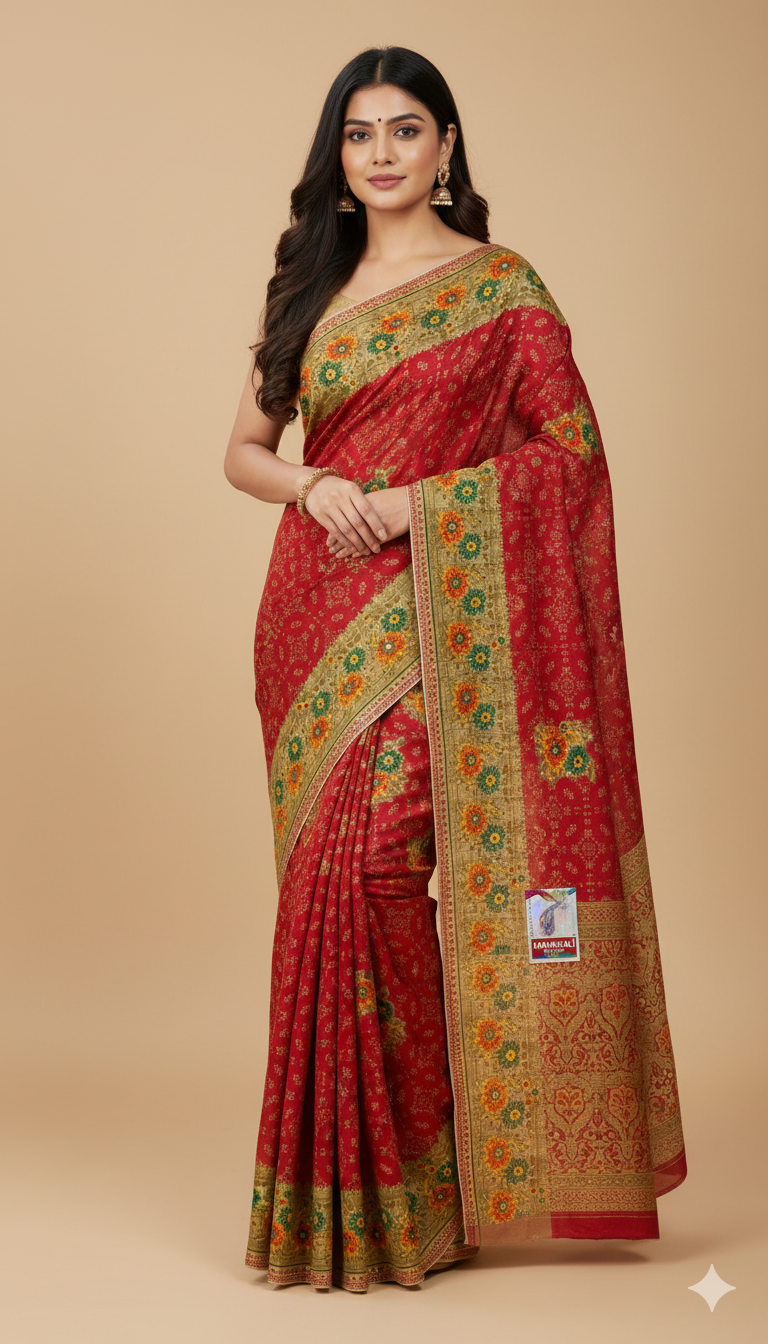 The fabric’s smooth texture and natural sheen enhance the wearer’s grace. Its breathable cotton weave ensures unmatched comfort even in humid weather. Each pleat falls elegantly, creating a fluid silhouette that flatters every body type. The saree’s durability ensures it stays fresh and beautiful through countless wears, becoming a wardrobe staple for years to come.