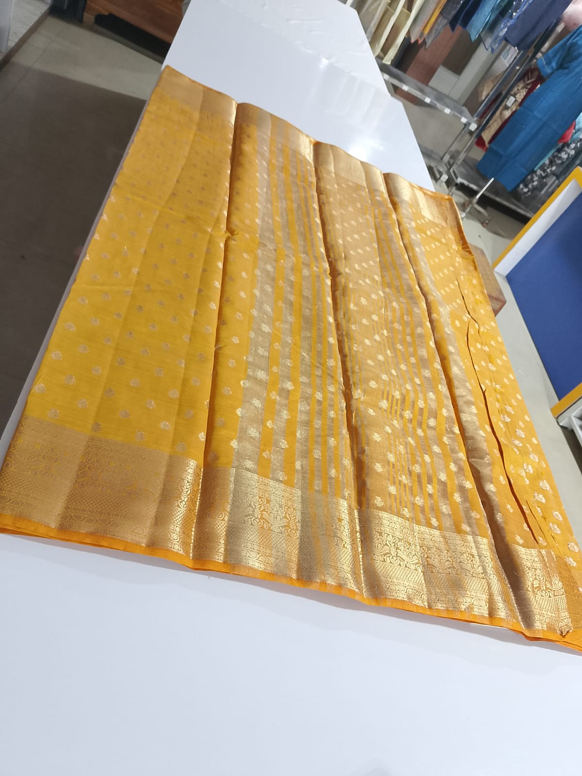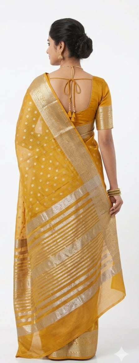 Color: Vibrant Mustard Yellow with Silver-Toned Zari accents.