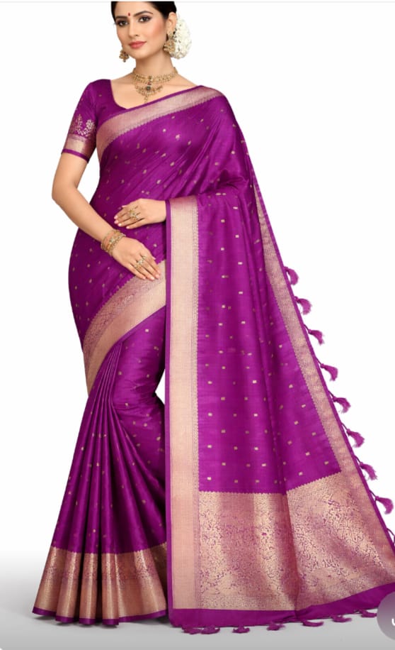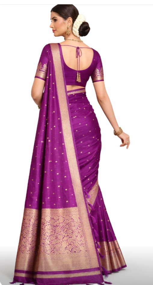 Meta Description: Shop the exquisite Bangalore Soft Silk Saree (SKU251) at Juss Apparels. Featuring royal purple silk, gold zari buttis, and a grand pallu. Perfect for weddings & festivals!