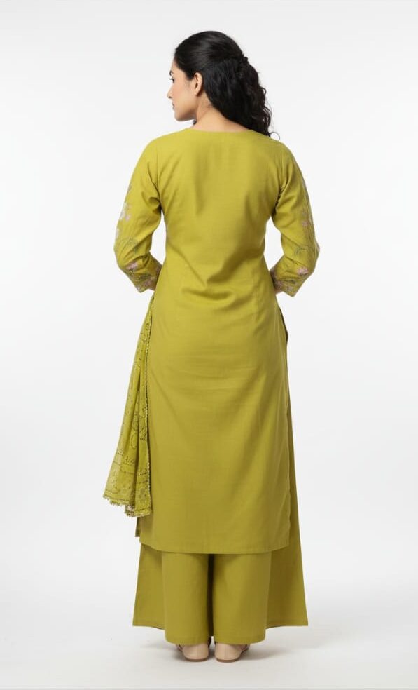 The top in this set features a flattering cut that complements different body types. It provides a neat and structured appearance while still maintaining a relaxed feel. The ethnic-inspired design gives it a timeless charm, while the clean lines and modern tailoring make it suitable for contemporary styling. You can easily dress it up or down depending on the occasion. For a simple daytime look, pair it with flats and minimal accessories. For a more festive appearance, add statement earrings, bangles, and elegant footwear.
