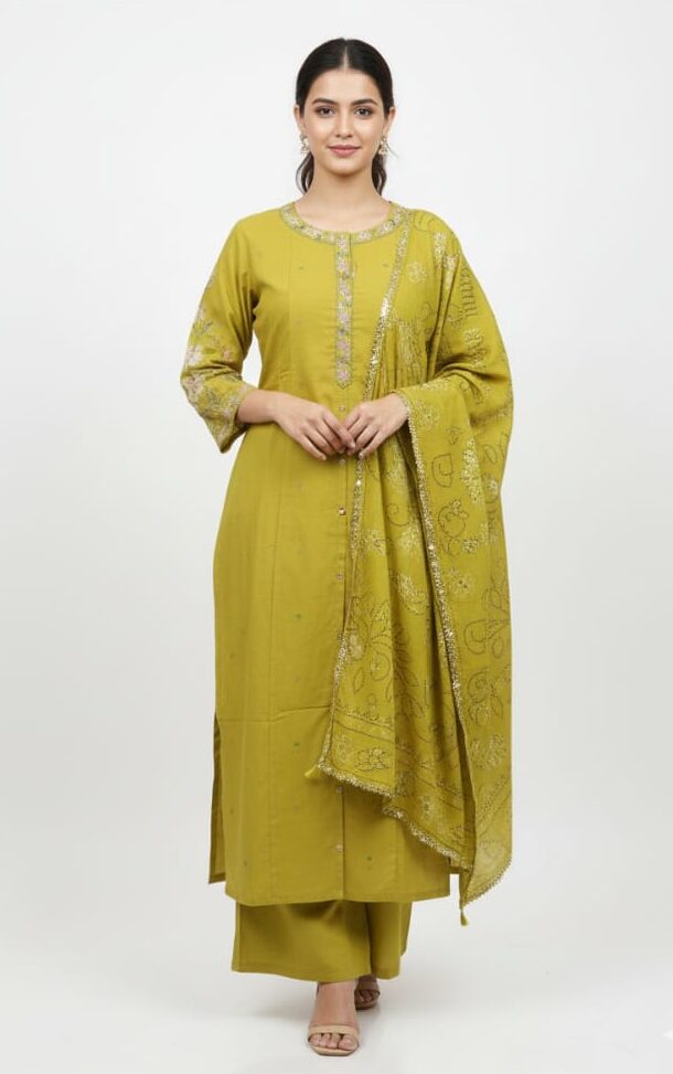 This outfit is perfect for multiple occasions. It works beautifully as office wear when styled with subtle accessories and a structured handbag. It is equally suitable for daily wear due to its comfort-focused design. For festive celebrations or family functions, you can elevate the look with traditional jewelry and stylish footwear. The adaptable design ensures that you always look appropriately dressed without feeling overdressed or uncomfortable.