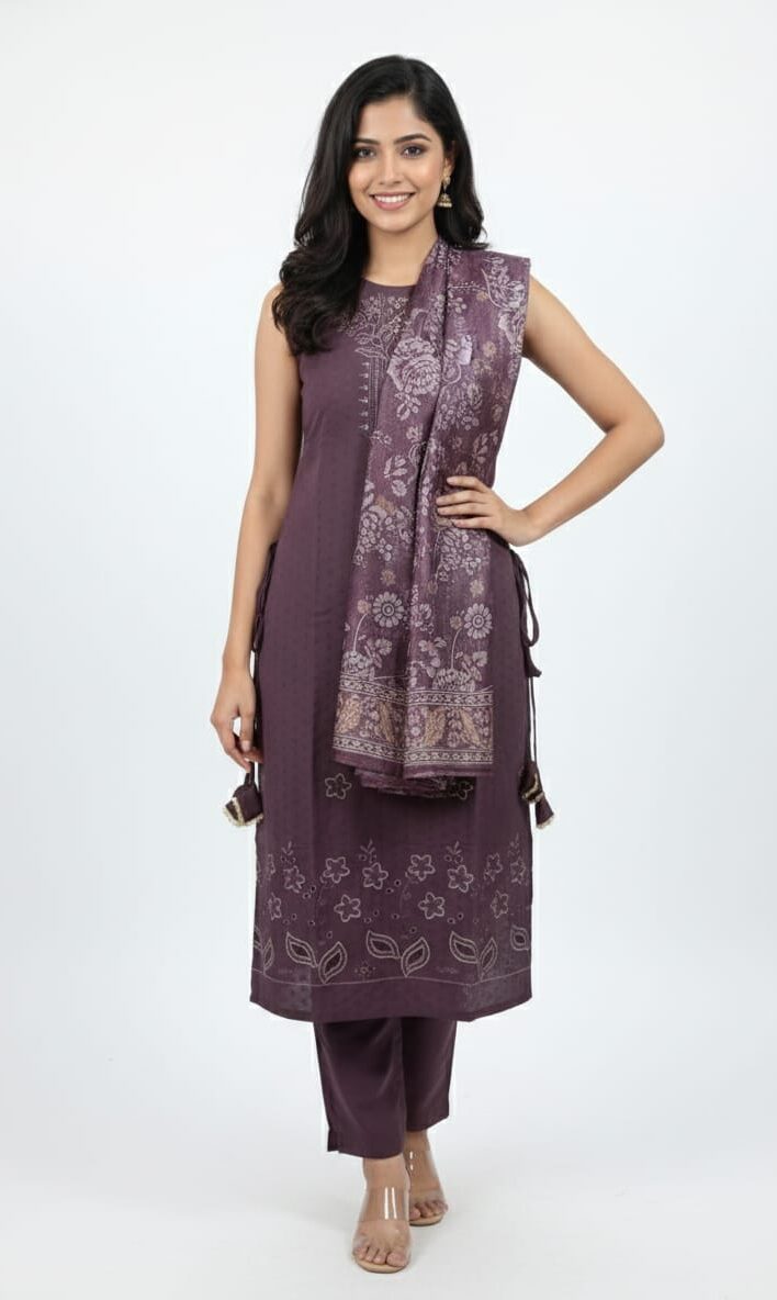 This kurti set comes with a matching bottom, creating a complete and coordinated look. The ready-to-wear combination makes it easy to style without spending extra time on outfit planning. Whether paired with minimal accessories for a simple look or styled with statement jewelry for festive occasions, this outfit adapts effortlessly to your needs.