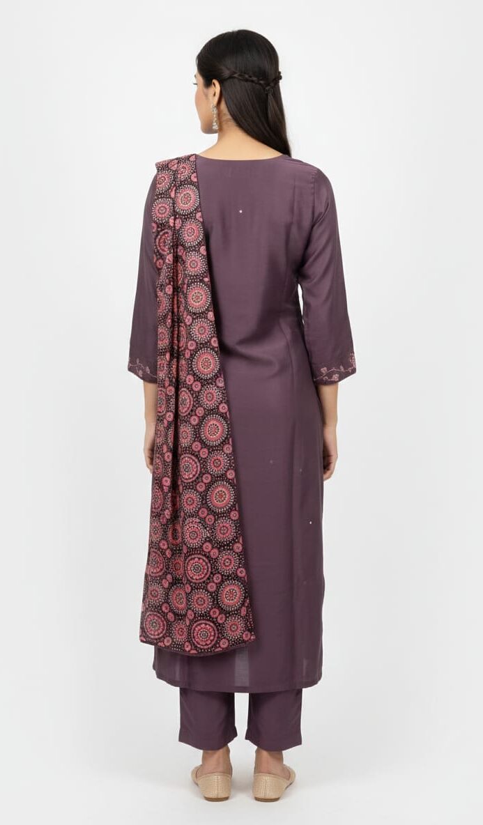 This kurti set comes with a matching bottom, creating a complete and coordinated look. The ready-to-wear combination makes it easy to style without spending extra time on outfit planning. Whether paired with minimal accessories for a simple look or styled with statement jewelry for festive occasions, this outfit adapts effortlessly to your needs.